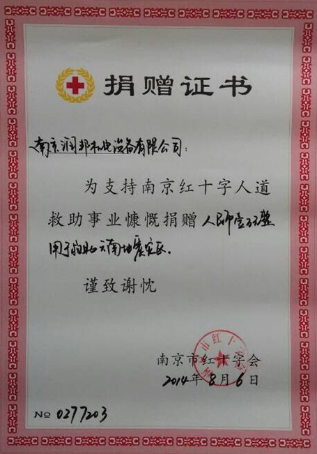 南京潤(rùn)邦機(jī)電設(shè)備有限公司為魯?shù)闉?zāi)區(qū)捐款1萬(wàn)元 2014-08-07
